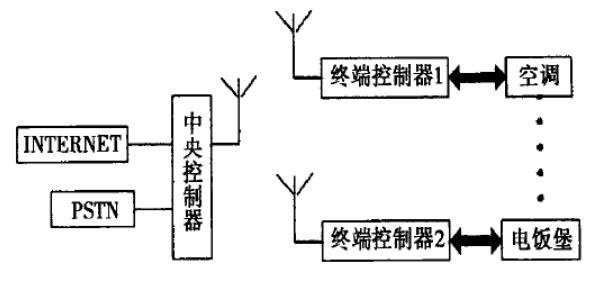 智能家居系統(tǒng)由內(nèi)置藍牙芯片的系統(tǒng)中央控制器內(nèi)置藍牙芯片和具有紅外轉(zhuǎn)換并粘于現(xiàn)有家電的各終端控制器家用計算機和網(wǎng)絡(luò)接口等部分組成。其中系統(tǒng)中央控制器通過家用計算機連入lnter-net ,并通過自己的PSTIN 公用電話父狀網(wǎng)次比均系縮中央挖制囂通過藍牙無線傳輸網(wǎng)絡(luò)同系統(tǒng)的各終端控制器通過藍牙無線傳輸組成星形拓撲結(jié)構(gòu)。系統(tǒng)中央控制器通過藍牙無線傳輸網(wǎng)絡(luò)同系統(tǒng)的各終端控制器進行通訊傳輸控制命令和反饋信息,然后各終端控制器產(chǎn)生紅外控制信號或通過繼電器來最終控制相應(yīng)的家電。