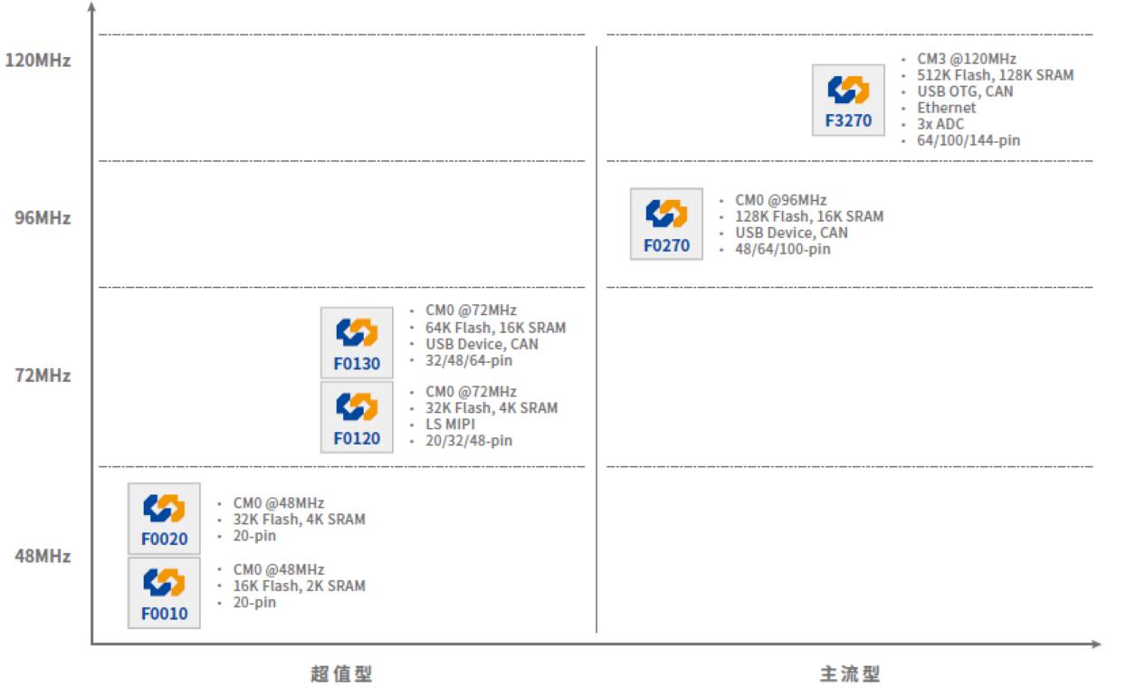 在超值型產(chǎn)品中,增加了可用的GPIO數(shù)量,并提高了72MHz M0產(chǎn)品的存儲(chǔ)容量比,以便支持更強(qiáng)的計(jì)算處理能力。