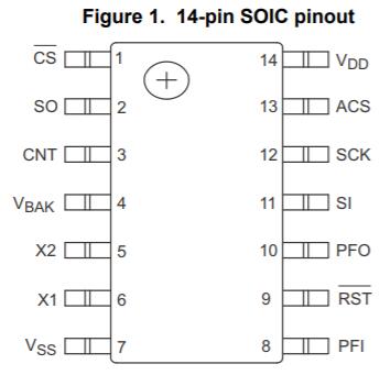 PFI上的比較器將外部輸入引腳與板載1.5V參考進行比較。這對于生成電源故障中斷(NMI)很有用,但可用于任何目的。該系列還包括一個可編程的64位序列號,可以鎖定使其無法更改。此外它還提供了一個事件計數(shù)器,用于跟蹤在專用輸入引腳上檢測到的上升沿或下降沿的數(shù)量。計數(shù)器可以在VDD電源下編程為非易失性或僅使用VBAK由電池供電。如果VBAK連接到電池或電容器,則即使在沒有VDD的情況下也會對事件進行計數(shù)。