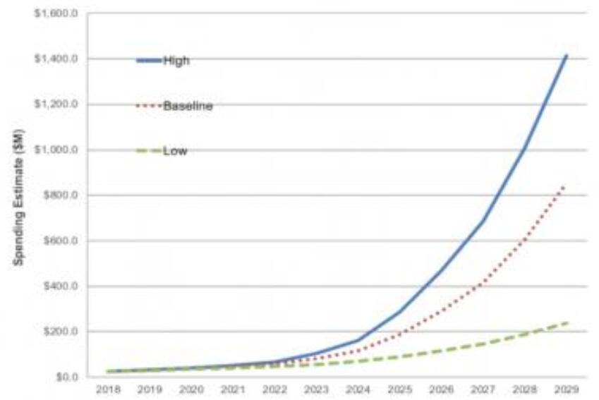 對MRAM存儲器的巨大需求將刺激設(shè)備支出的穩(wěn)步增長。預(yù)計MRAM設(shè)備市場將從2018年的2600萬美元增長到2029年的854美元-增長33倍。