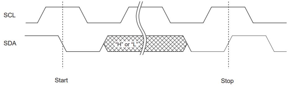 要通過I2C總線啟動讀或?qū)懖僮?,請在SCL輸入為“H”電平時將SDA輸入從“H”電平更改為“L”電平。