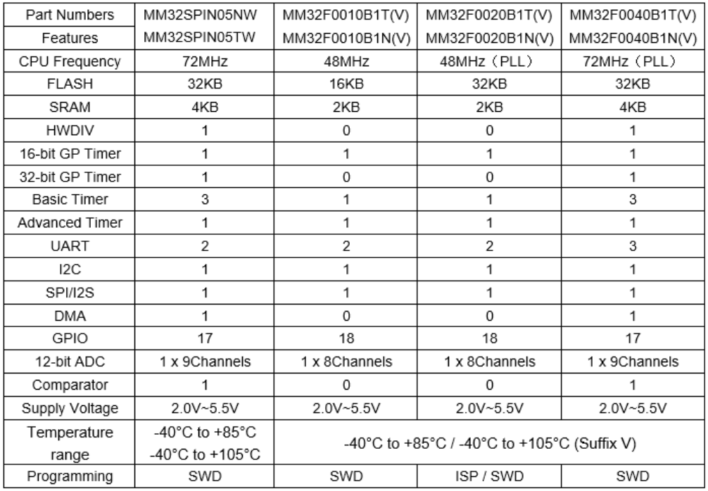 MM32F0020 的封裝相同,但在性能和外設(shè)上還是有不少不同之處的,部分可以參照下表所示。此外 MM32F0040 還增加了 MM32F0020 所不具有的外設(shè)功能,比如硬件除法器、比較器、32 位定時(shí)器等。所以項(xiàng)目之初做好評(píng)估,在硬件設(shè)計(jì)時(shí)做好兼容,在替換的時(shí)候,需要結(jié)合項(xiàng)目實(shí)際的硬件需求,做好對(duì)比;滿(mǎn)足條件的情況下,可以進(jìn)行升級(jí)。更多詳情可咨詢(xún)靈動(dòng)微官方代理商英尚微電子。