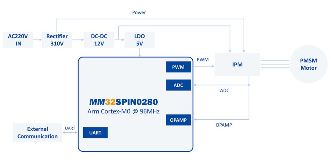 MM32SPIN0280為主控的主變一體洗衣機(jī)方案