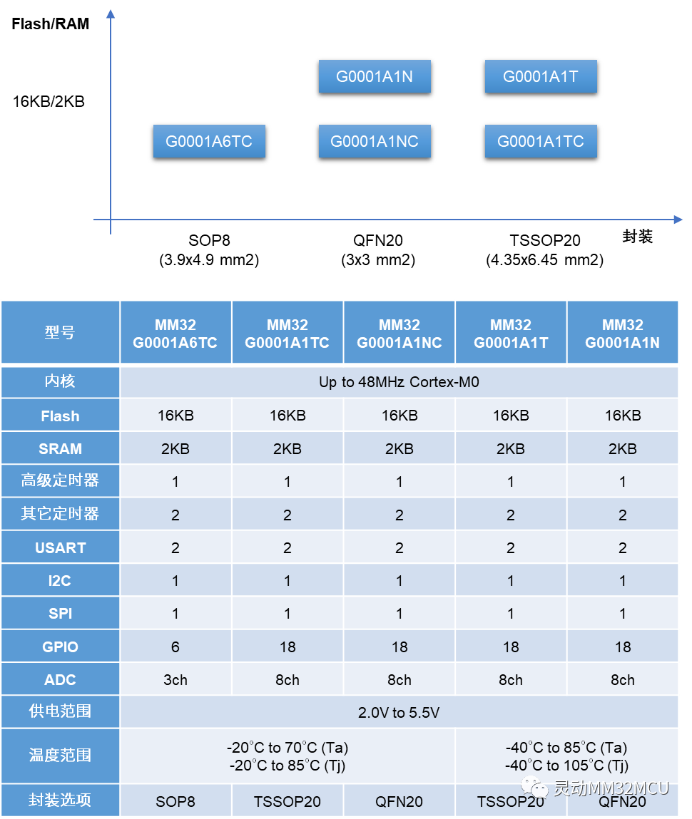 MM32G0001的產(chǎn)品組合如下: