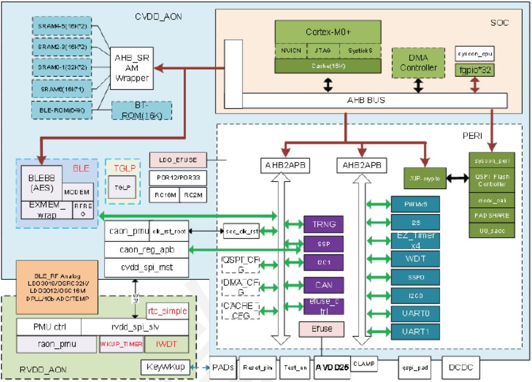 MS1636擁有多達27個GPIO可以更好的滿足IDH對應外設的管理要求。自主知識產權的藍牙通信模塊,也可以提供更靈活的無線收發(fā)需求,同時,不需要更多的外部器件。MS1636集成DC-DC電壓轉換器,并提供多種低功耗工作模式。滿足從高性能要求,到低功耗要求的各種物聯(lián)網和可穿戴產品設計要求。