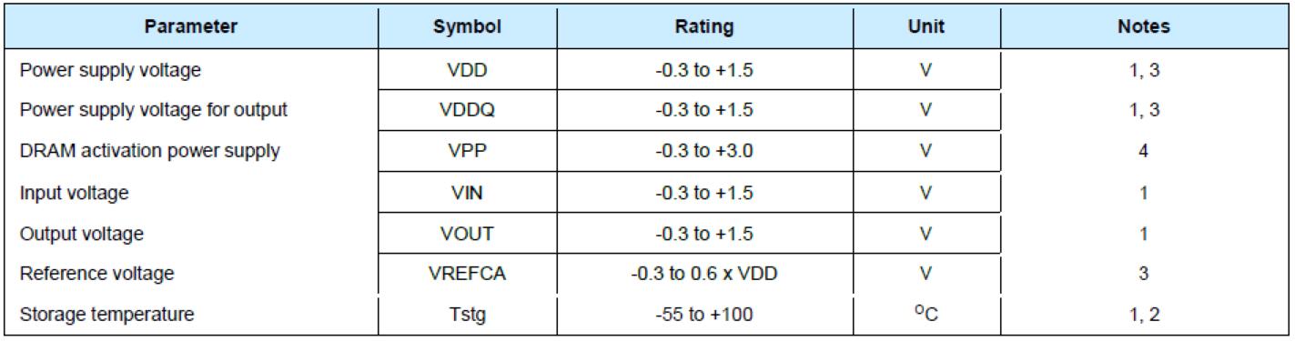 3. VDD和VDDQ始終必須在300mV之內(nèi)。當(dāng)VDD和VDDQ小于500mV時,VREFCA必須不大于0.6×VDDQ;VREFCA可以等于或小于300mV。