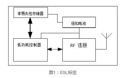 結(jié)構(gòu)最簡(jiǎn)單的ESL由一個(gè)LCD或電子、RF模塊、墨水顯示屏、配套處理器、紐扣電池和低引腳數(shù)存儲(chǔ)器(易失性和非易失性存儲(chǔ)器)構(gòu)成。可以根據(jù)需求功能的不同,將所需要的價(jià)格走向,購(gòu)買走向和當(dāng)前庫(kù)存信息存儲(chǔ)在ESL中,待一天結(jié)束刷新中央服務(wù)器的數(shù)據(jù)。如果要實(shí)現(xiàn)用一顆小紐扣電池供電并維持?jǐn)?shù)幾年的工作機(jī)能需要讓整個(gè)系統(tǒng)使用一個(gè)低功耗控制器和存儲(chǔ)器?;趦?nèi)置的連接選項(xiàng)(通常是BLE或Wi-Fi),板載存儲(chǔ)器可兼作協(xié)議棧存儲(chǔ)空間,繞過(guò)商場(chǎng)的中央服務(wù)器,直接連接用戶手機(jī)。
